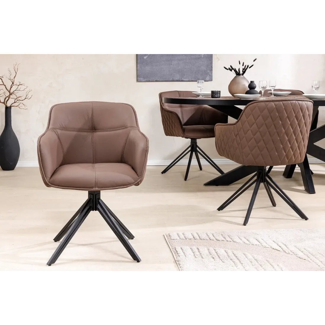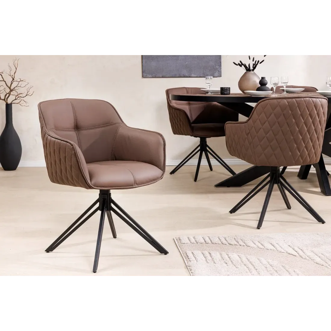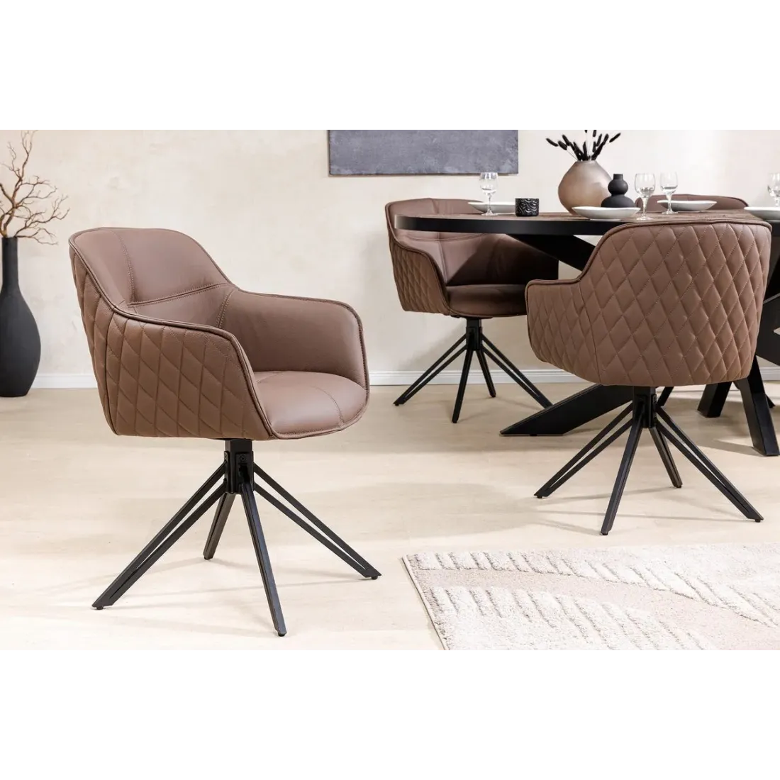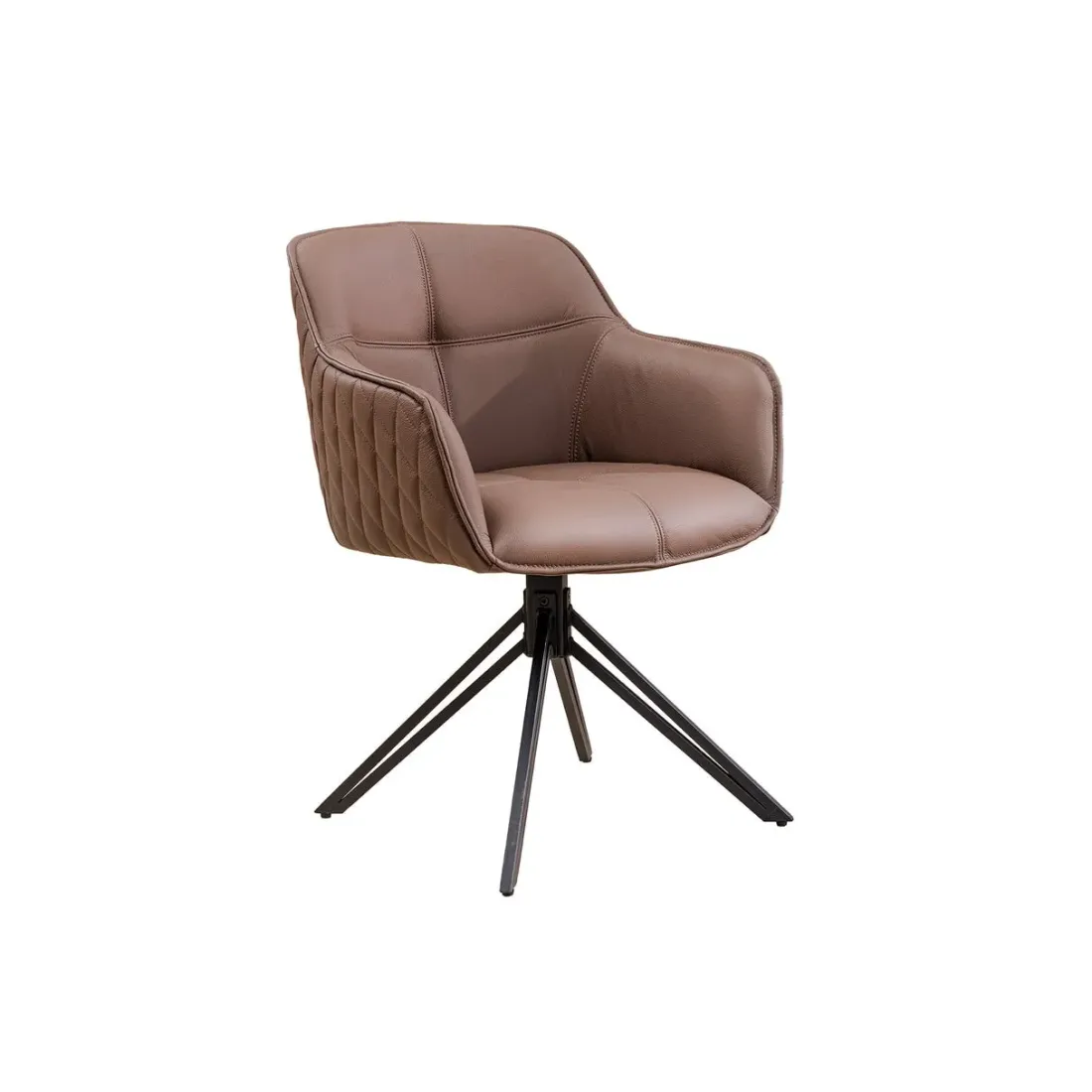 La chaise EUPHORIA est un fauteuil design en cuir véritable marron, monté sur un piètement en métal noir. Dotée d’un mécanisme pivotant 180° avec retour automatique, elle combine look rétro, confort optimal et fonctionnalité intelligente. Un véritable bijou pour salle à manger, bureau ou coin lecture.