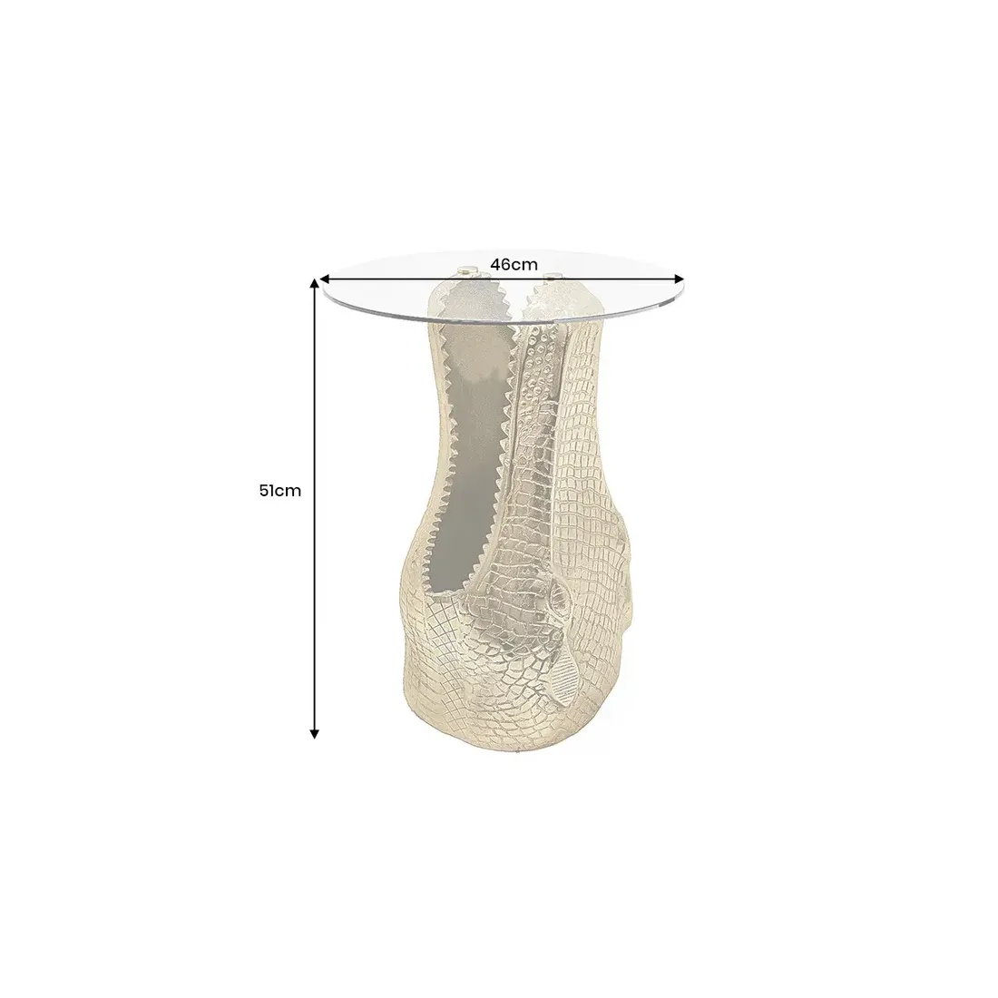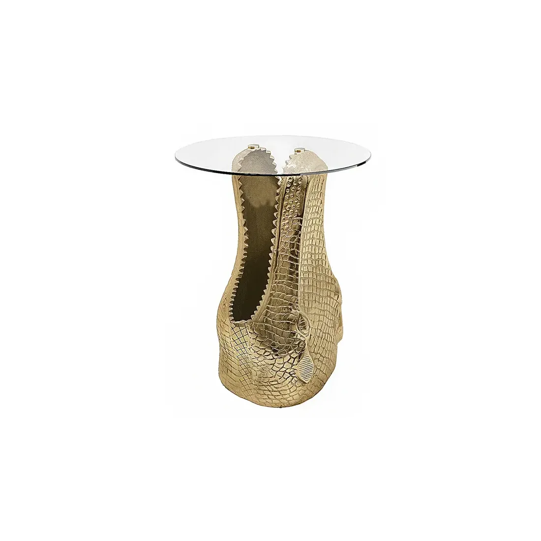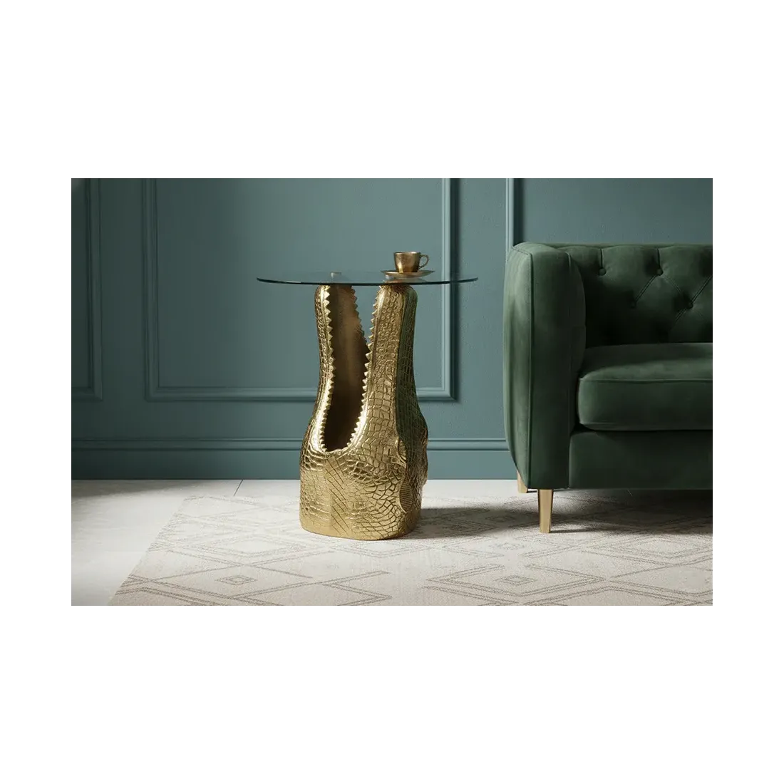 Table d'appoint design crocodile en métal doré et verre trempé – 50 cm