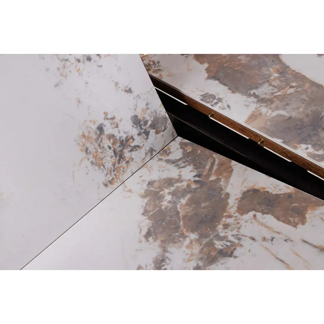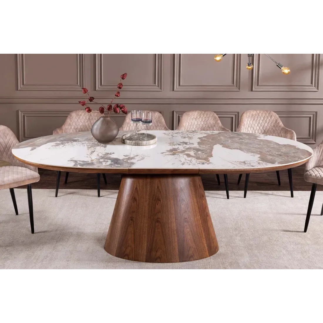 Table de salle à manger extensible en céramique effet pierre et bois de noyer 160-200 cm