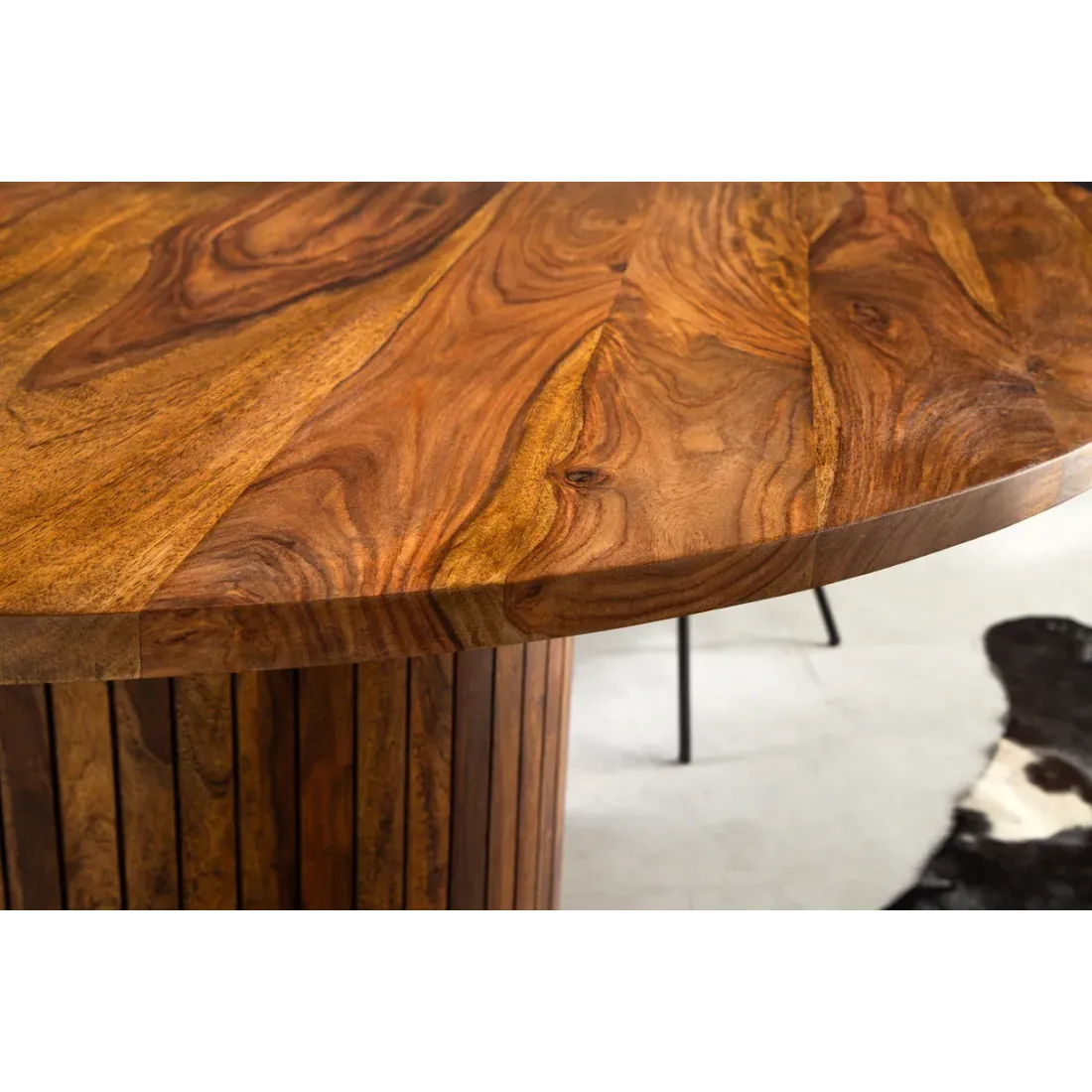 Table de salle à manger ronde en bois de sheesham 120 cm – finition pierre brune