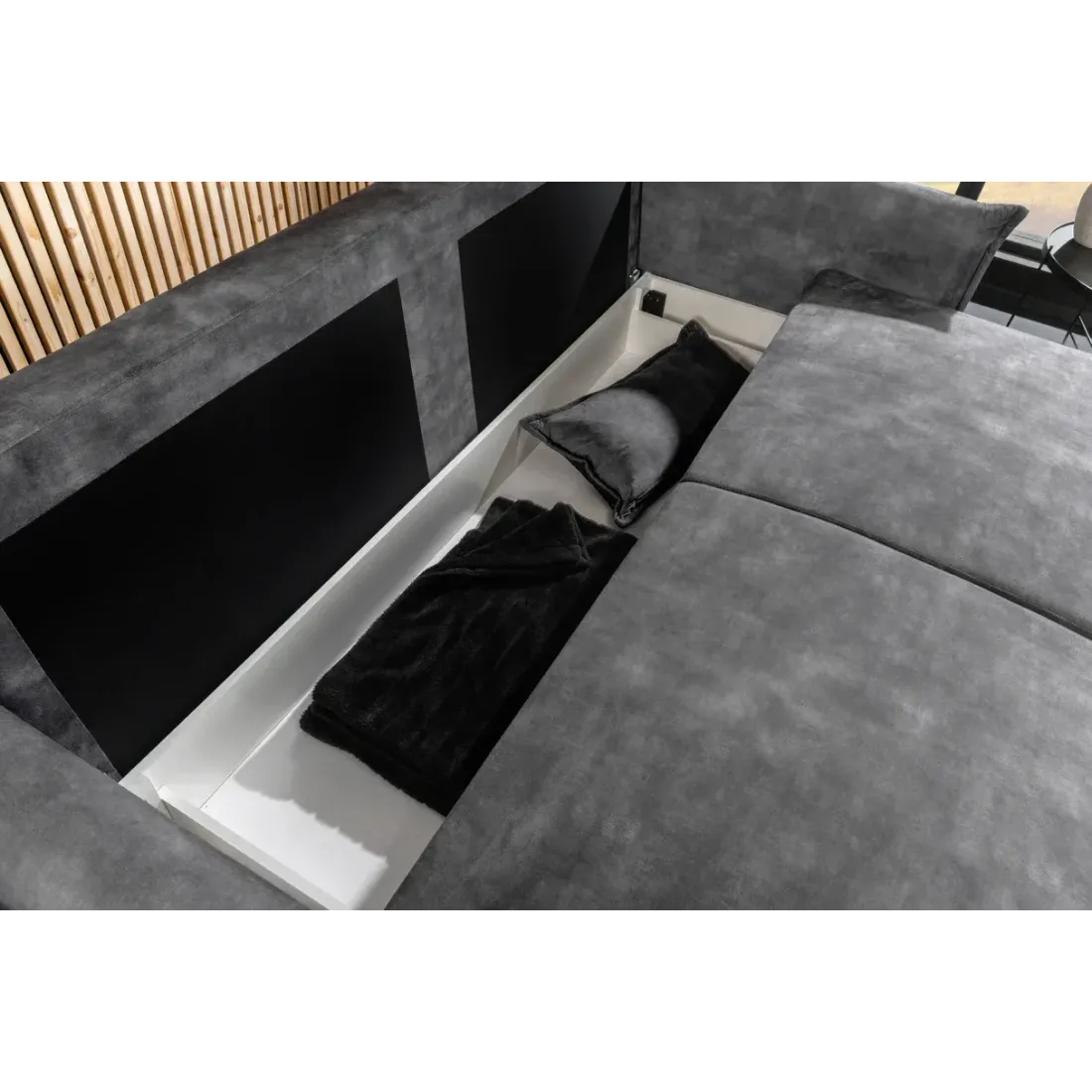 Le canapé-lit APARTMENT 215 cm allie élégance moderne et fonctionnalité. Son revêtement en velours doux, son couchage confortable et ses rangements intégrés en font la solution idéale pour un salon stylé et pratique. Disponible en gris ou jaune moutarde.
