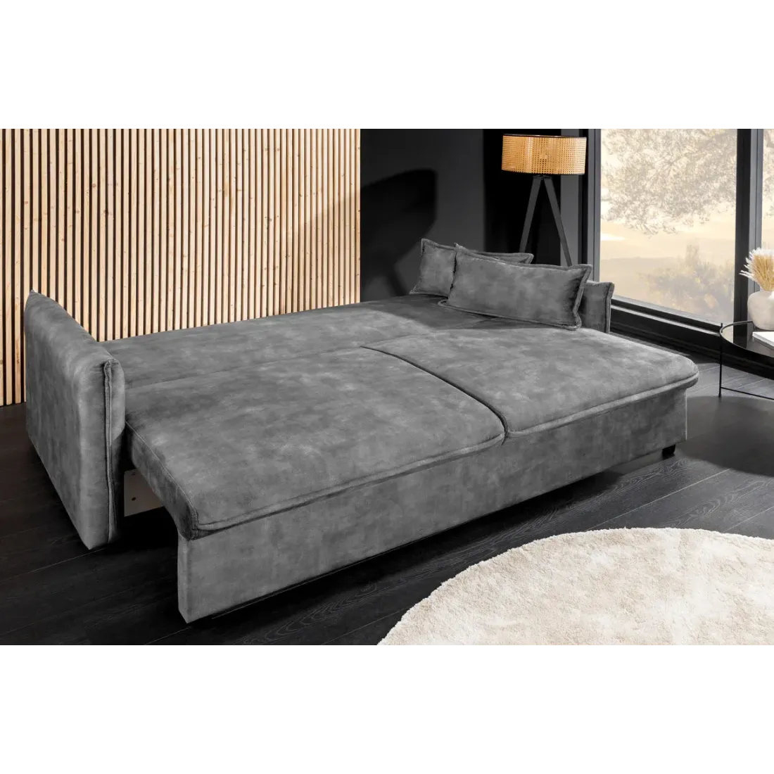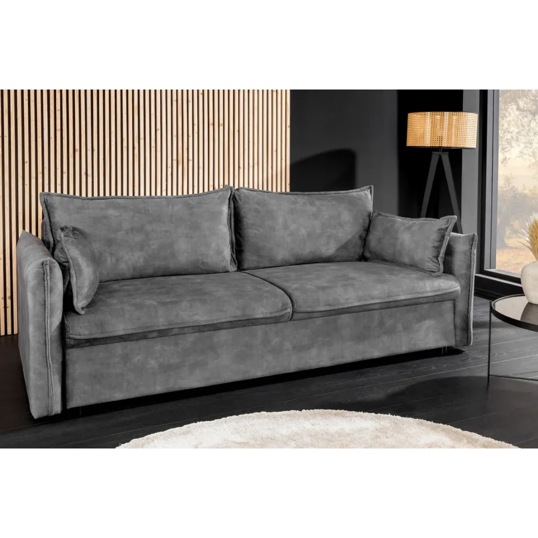 Canapé-lit velours moderne 3 places 215 cm | Decozzia