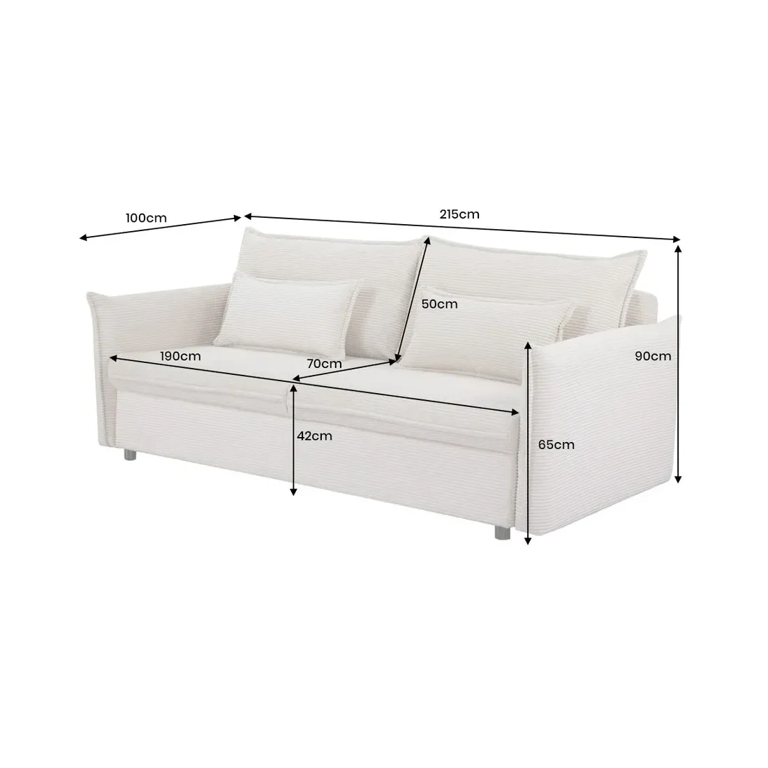 Canapé-lit en velours côtelé moderne 3 places 215 cm