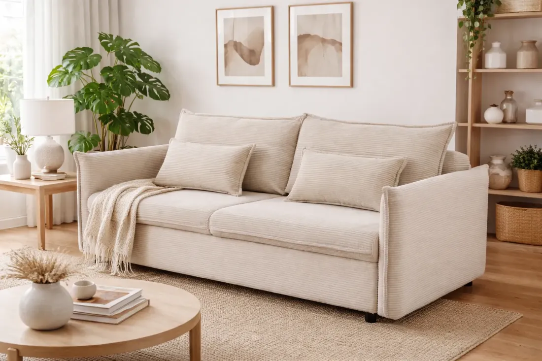 Disponible en beige chic, le canapé-lit APARTMENT s’intègre parfaitement dans les intérieurs modernes et chaleureux.