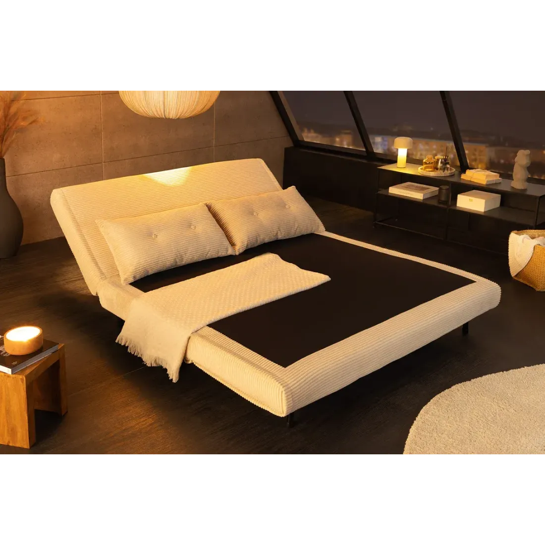 Fauteuil-lit velours côtelé multifonction 140 cm | Decozzia