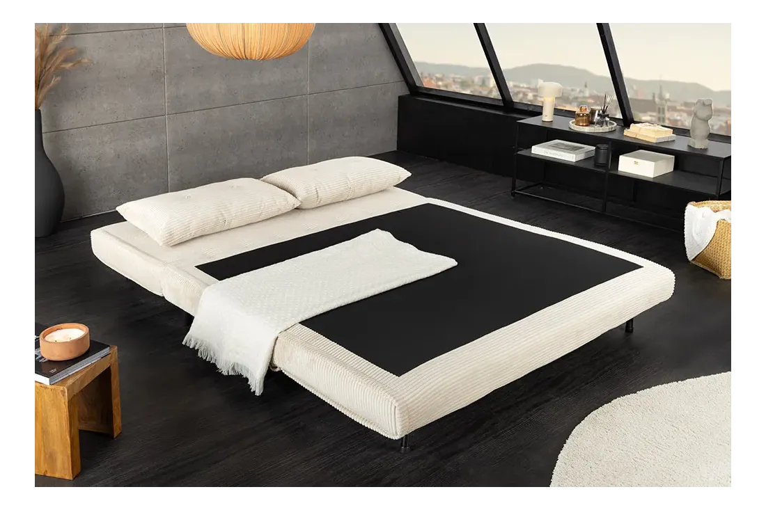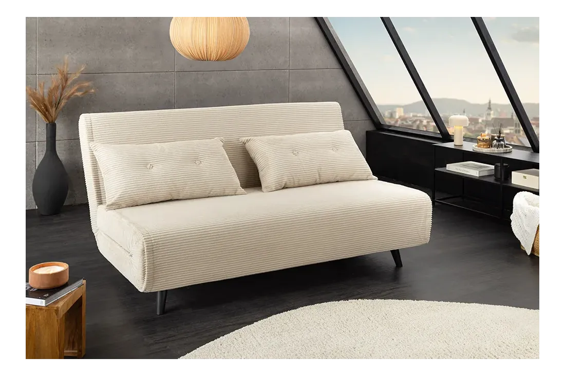 Canapé-lit velours côtelé 140 cm – Sans accoudoirs, petit espace | Decozzia