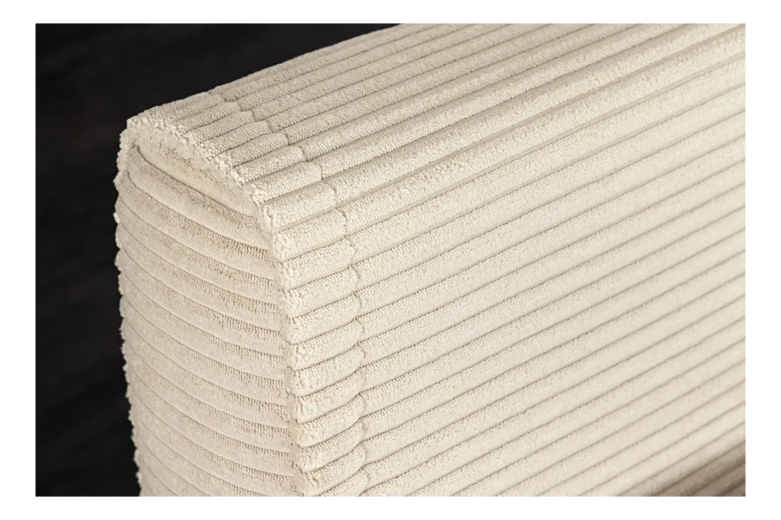 Le revêtement en velours côtelé (90 % polyester, 10 % nylon) est à la fois agréable au toucher et facile d'entretien. Les pieds en bois de pin verni noir assurent la stabilité même au quotidien. Trois coloris pensés pour s'intégrer dans tous les intérieurs minimalistes : gris foncé, beige, vert.