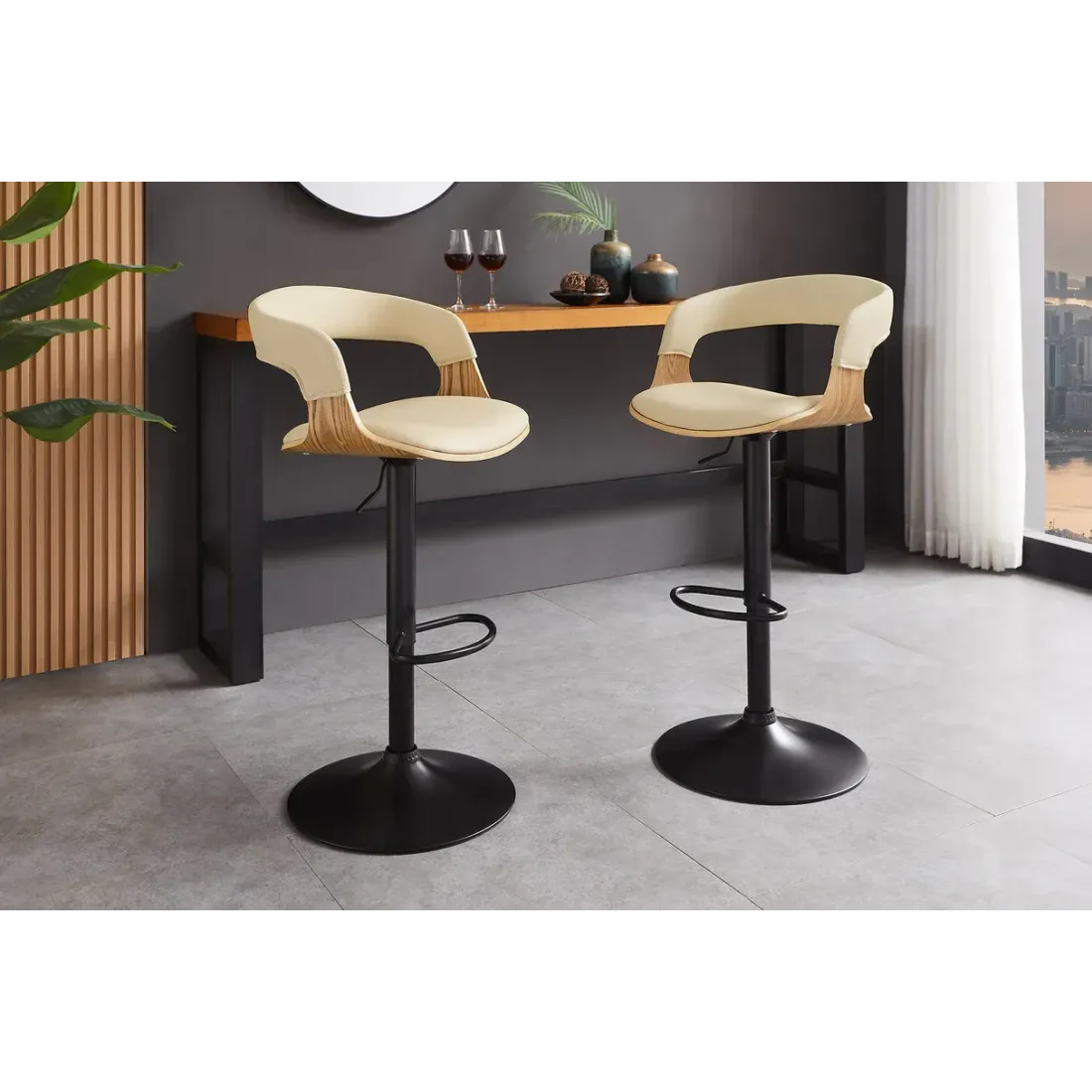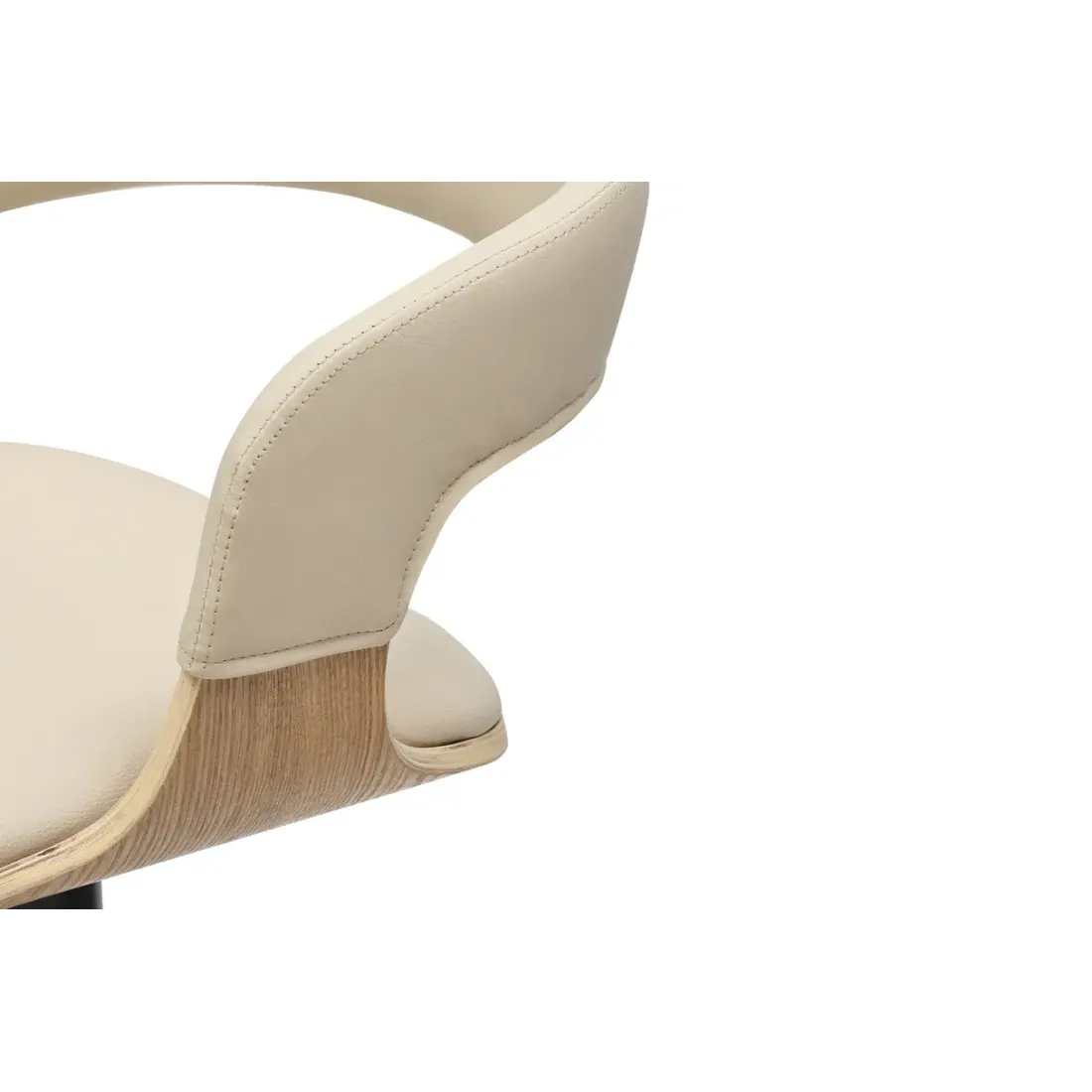 Le tabouret de bar MANHATTAN incarne une sophistication urbaine élégante, alliant un similicuir beige crème raffiné à une assise en placage de chêne véritable. Pivotant et réglable en hauteur, il offre un confort optimal tout en apportant une touche moderne et chaleureuse à votre bar ou îlot de cuisine.