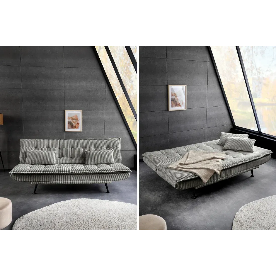 Issu de la collection JAZZ , ce canapé-lit 3 places allie style contemporain et fonctionnalité au quotidien. Son revêtement en velours côtelé, à la fois doux et résistant, offre un confort agréable aussi bien en position assise qu'en mode couchage.