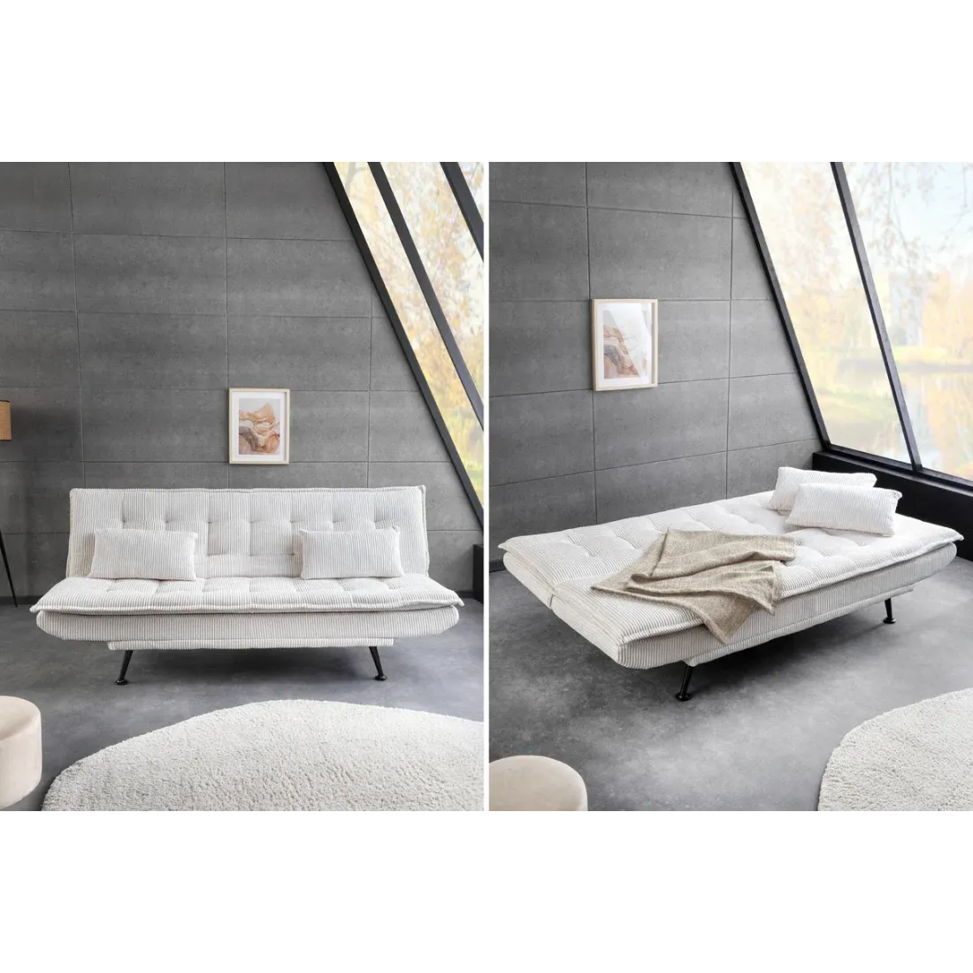 Le canapé-lit JAZZ séduit par son design moderne, son velours tricoté doux et sa grande polyvalence. Convertible en couchage en quelques gestes, il est idéal pour les moments de détente comme pour accueillir des invités, tout en apportant une touche élégante à votre intérieur.