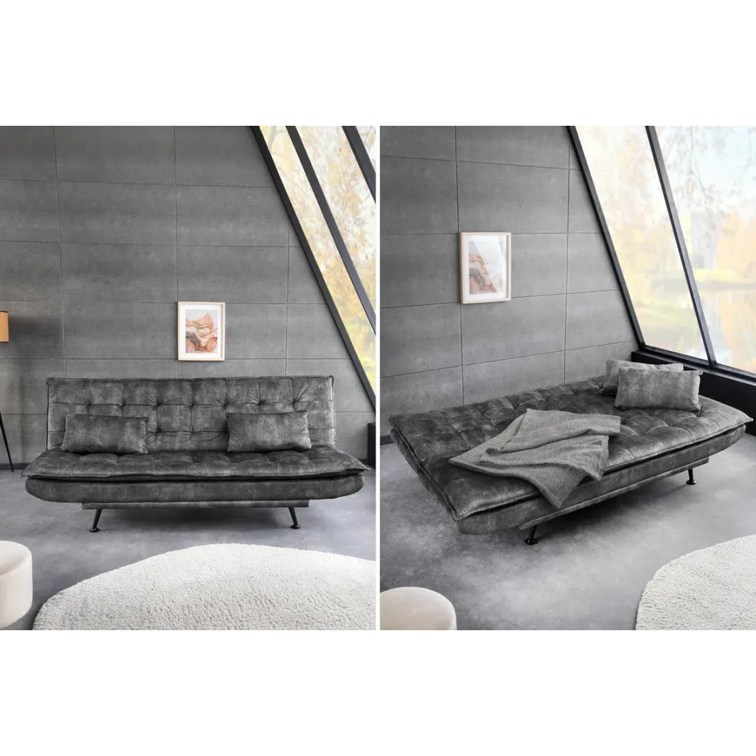 Le canapé-lit JAZZ en velours gris allie design contemporain et confort exceptionnel. Convertible en couchage spacieux, il est parfait pour les moments de détente ou pour accueillir des invités, tout en apportant une touche élégante à votre salon.