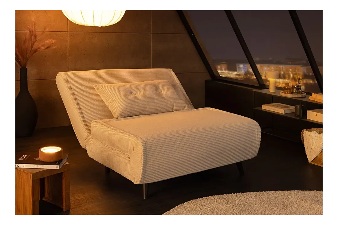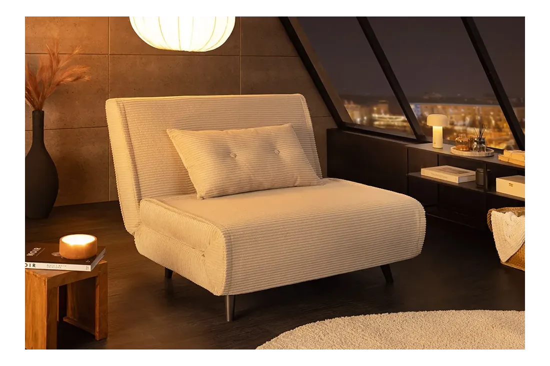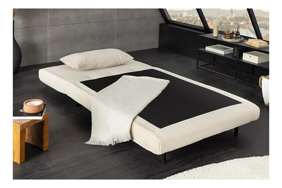Fauteuil-lit compact velours côtelé 100 cm – Sans accoudoirs | Decozzia