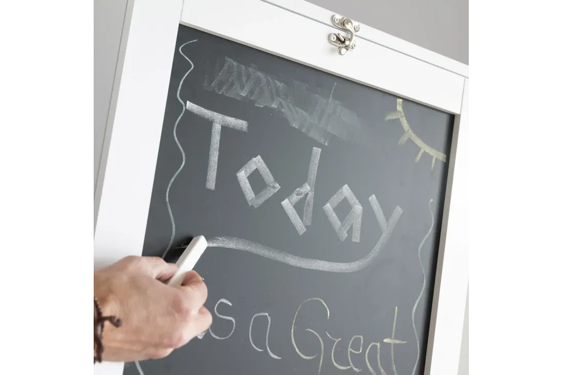 - Ardoise intégrée (40×68 cm) — pour noter vos idées, vos tâches du jour ou laisser un message. Efface facilement, sans papier.
