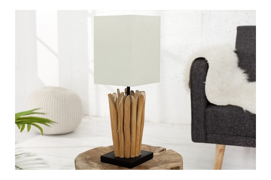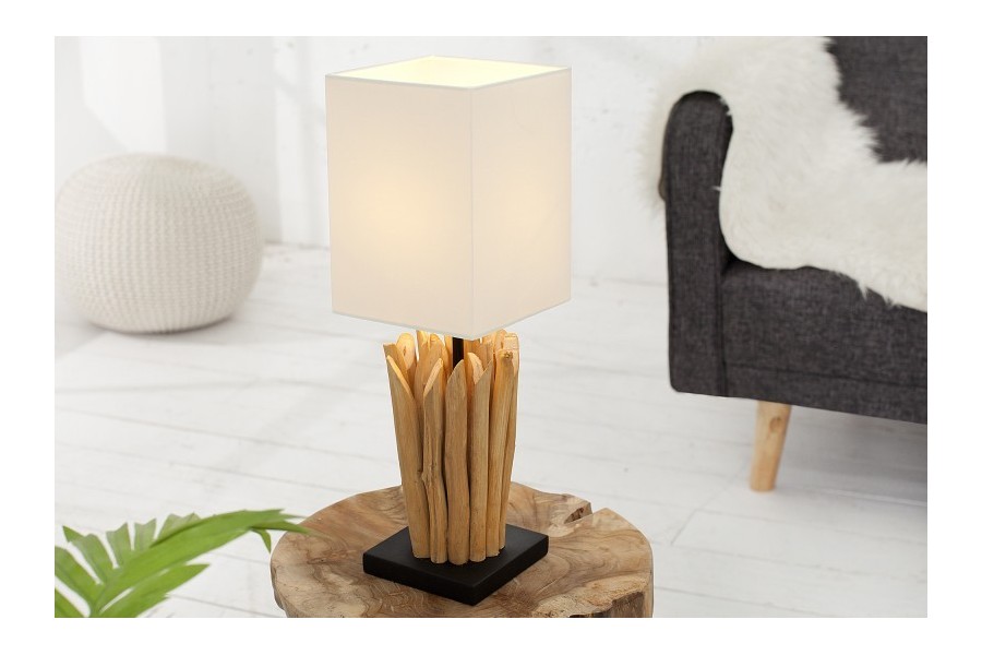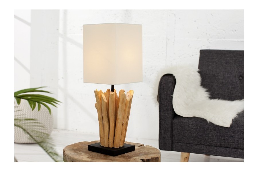 Sublimez la décoration de votre table avec cette lampe à poser, Elle est spéciale avec un abat - jour en lin et un socle en bois flotté, Elle et s'adaptera facilement à tout type de décor grâce à son design chic et élégant.